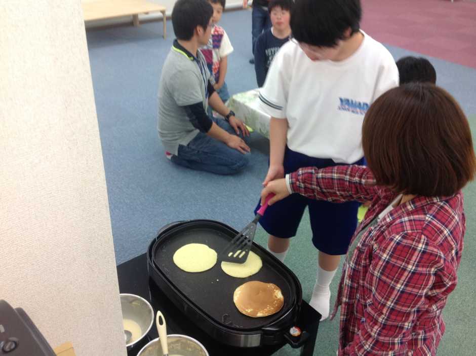 思い思いにトッピング。生クリームをしぼって「ひげじいさん」を作っていたお子さんもいました。