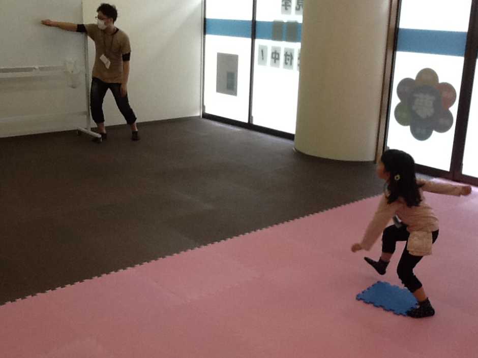 まずは、バランスボード玉入れ!