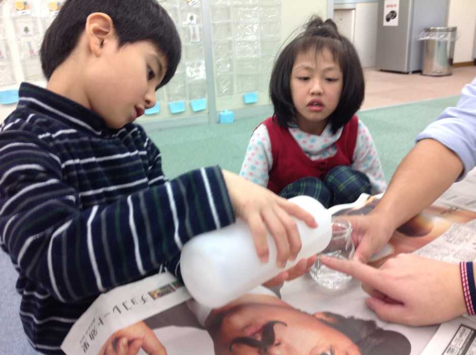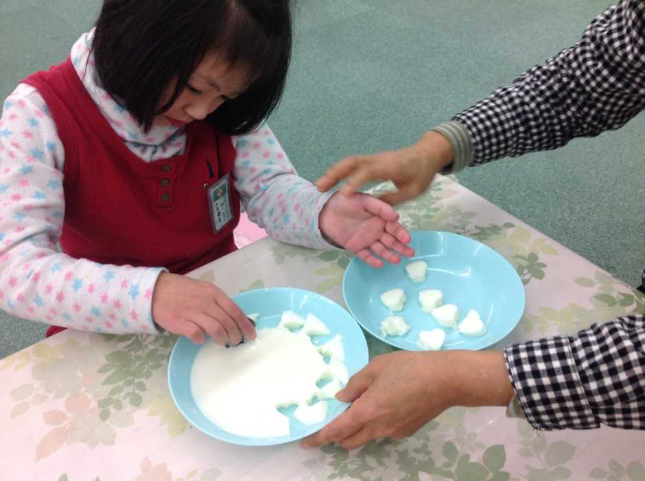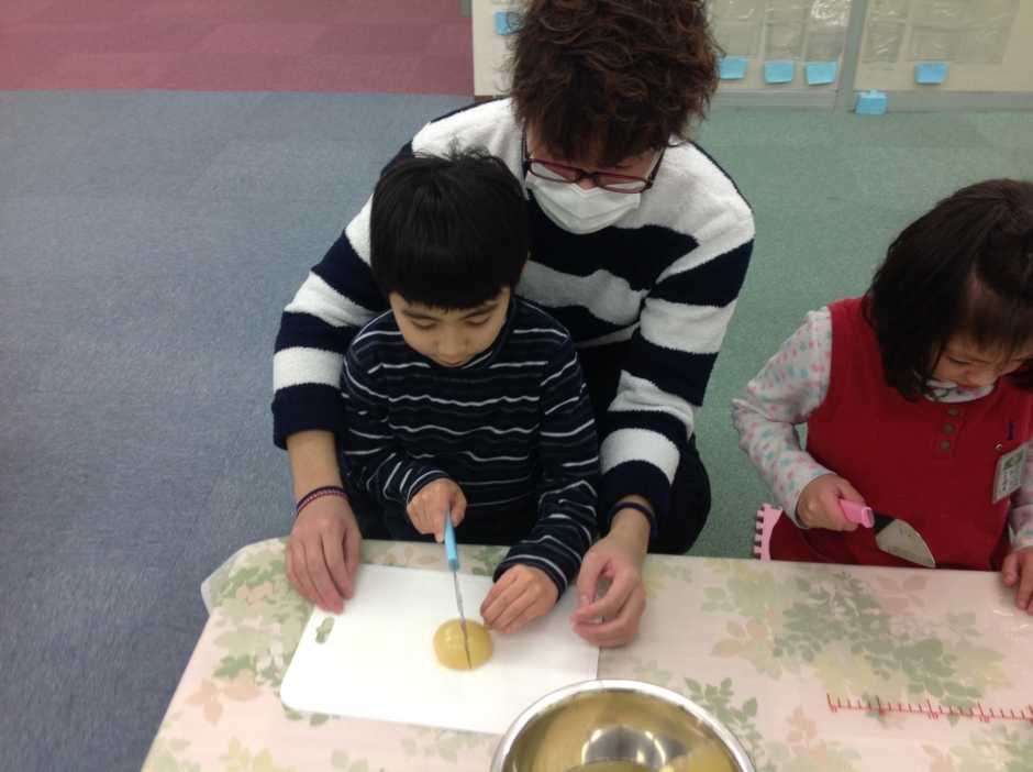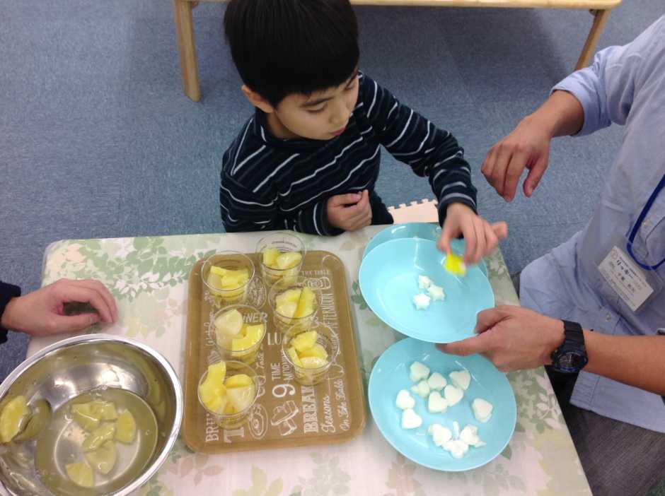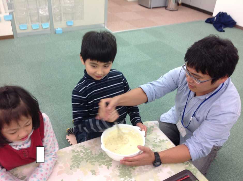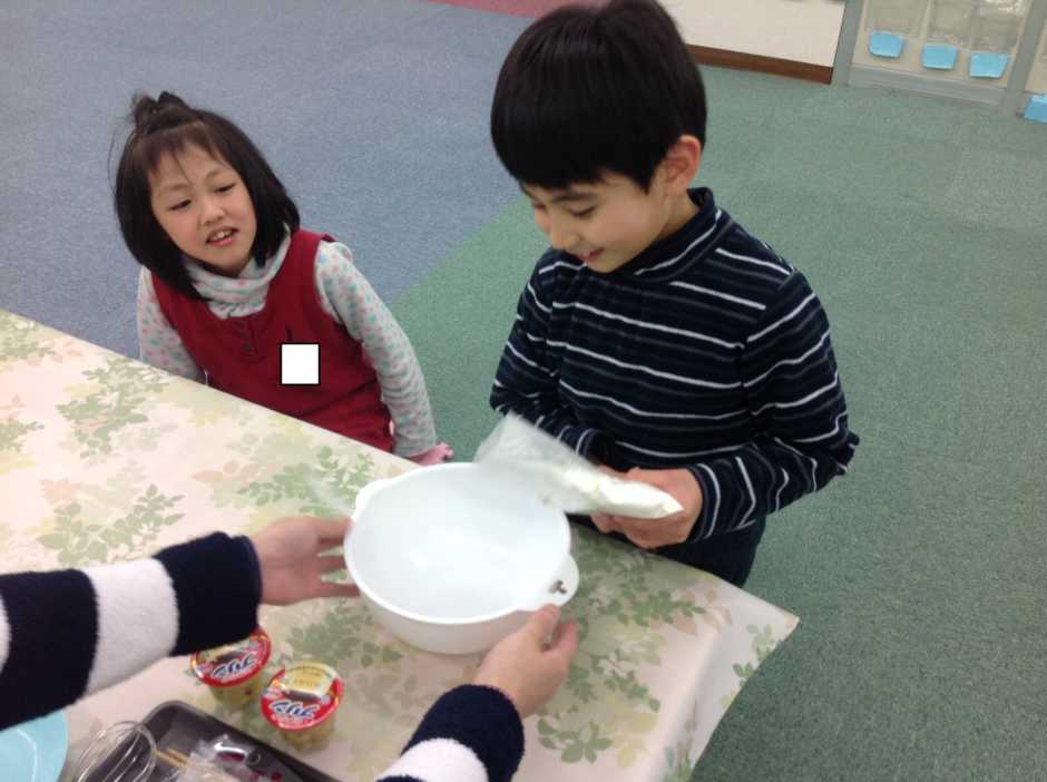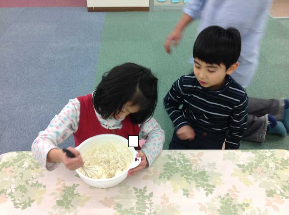 応援し合いながら混ぜる子供たちがとても微笑ましいです。