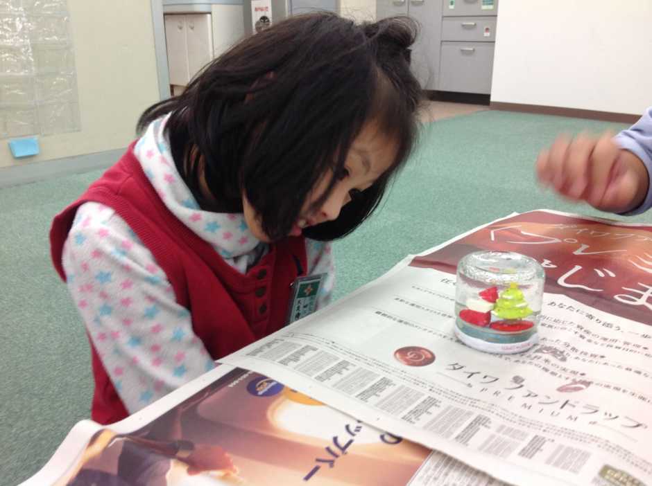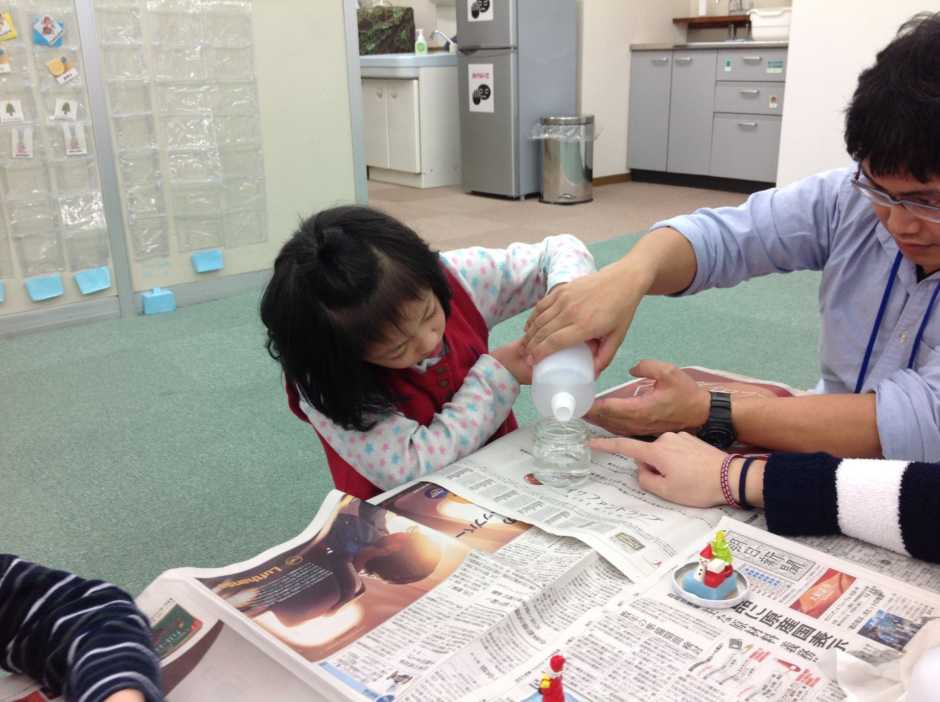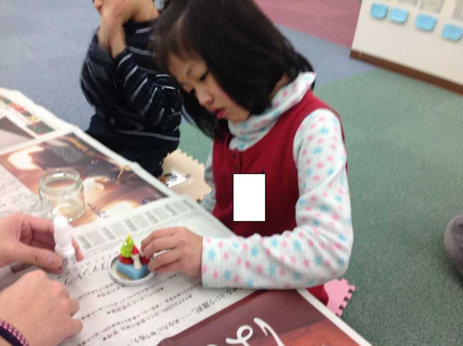 ゆっくりスポンジに人形を貼り付けてもらいました。