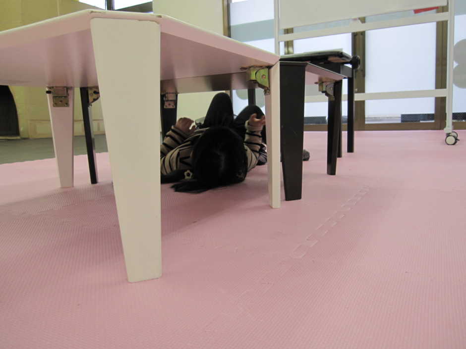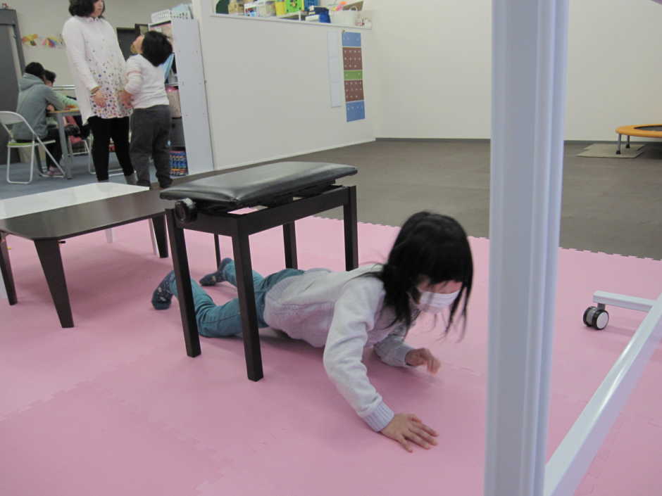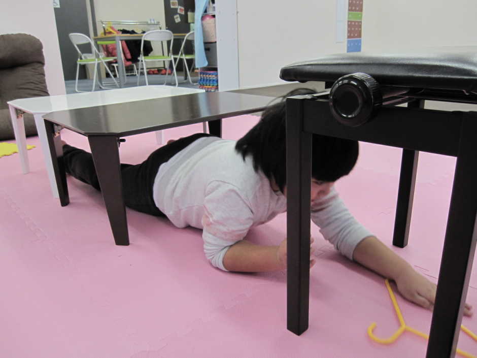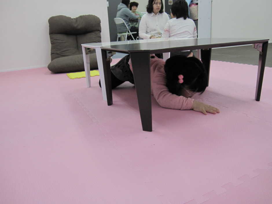 頭をぶつけないように!テーブル等の下をくぐったり、