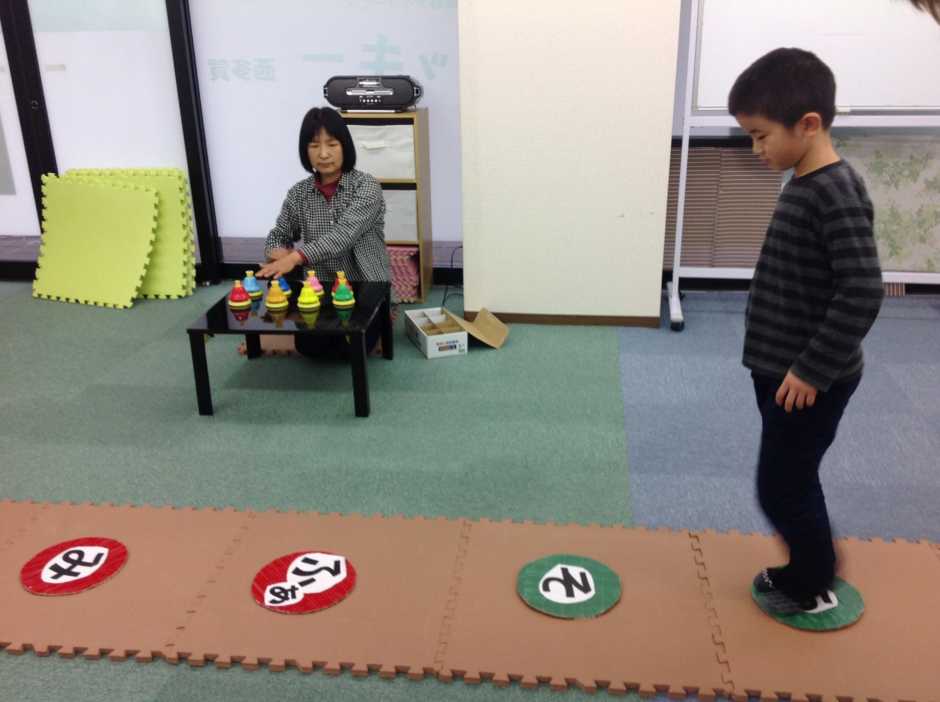 曲が聞こえると負けずとマットを見つめながら歩きまわり