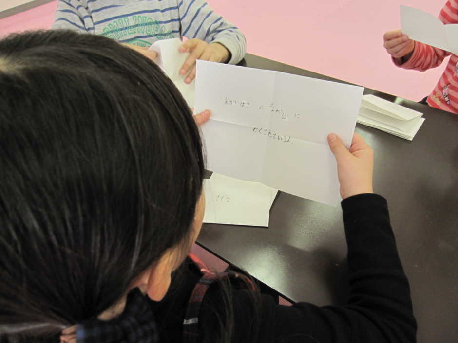 今日は初めに宝探しゲームを行いました。