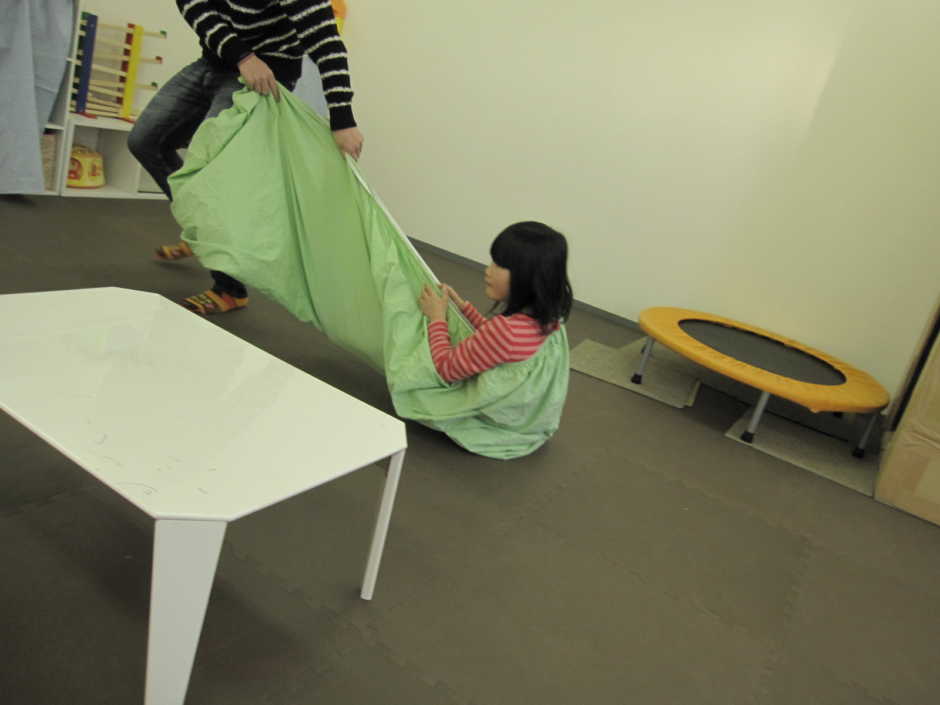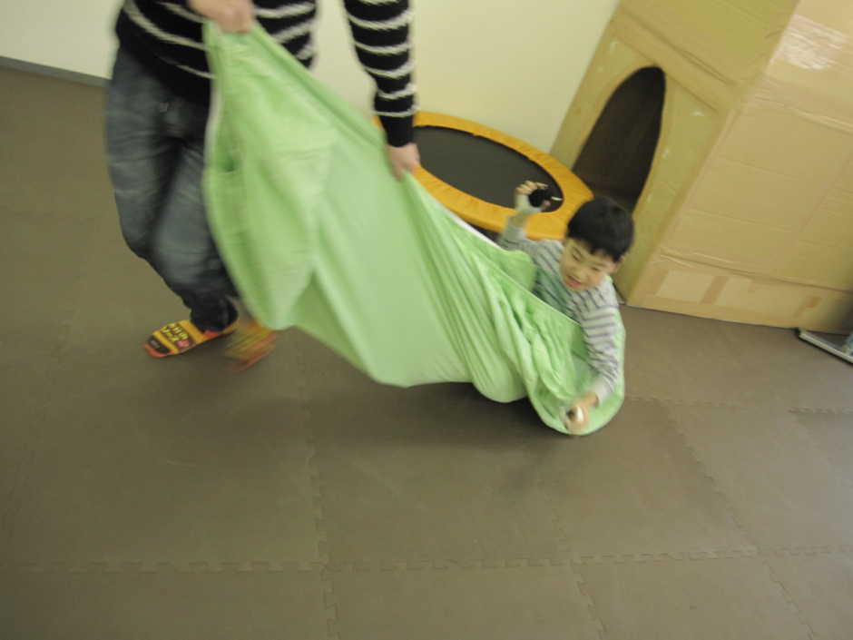 くぐり運動の次はシーツブランコです。