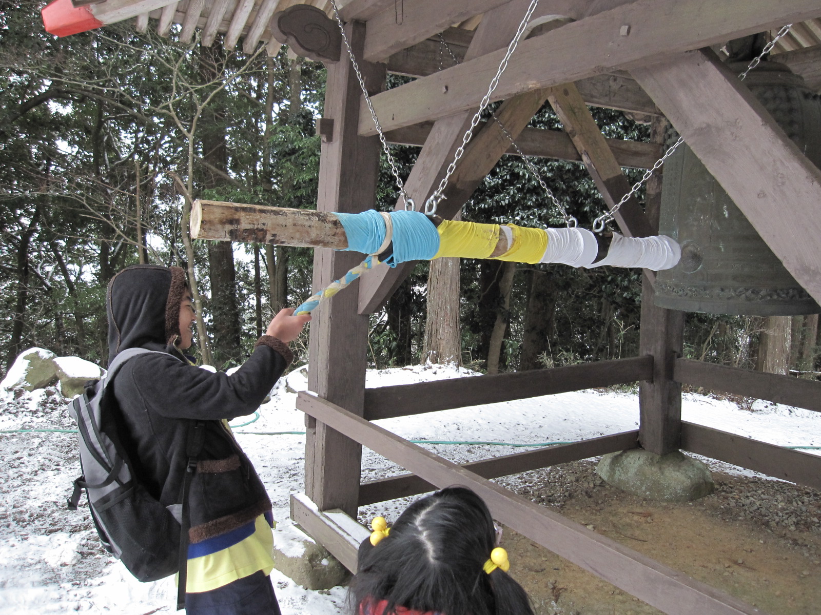 こちらの神社では、鐘をつけるようになっていて、