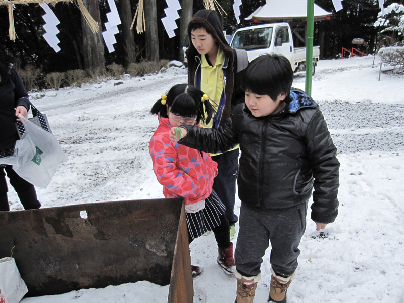 近くで神社の除雪作業をしていた方々に