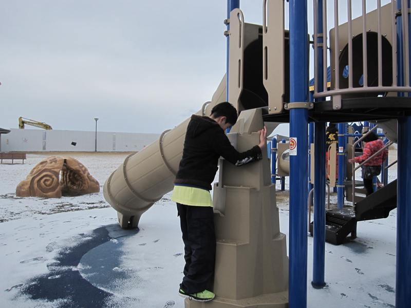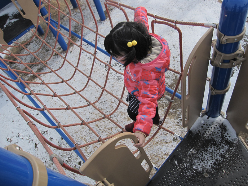 いつもは簡単にのぼれた遊具も、