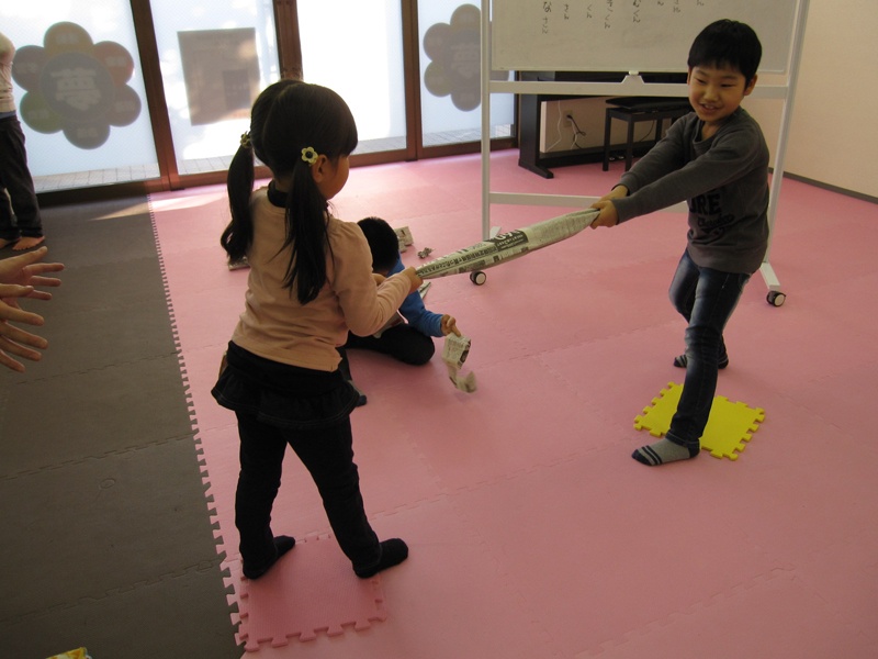 まずは新聞ひっぱりトーナメントからです。