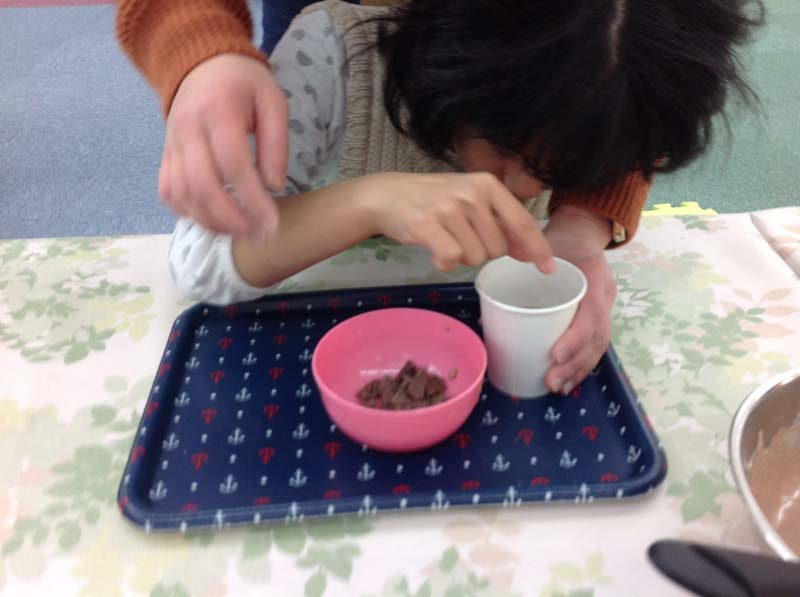 今日はクッキングでチョコカップケーキを作りました。