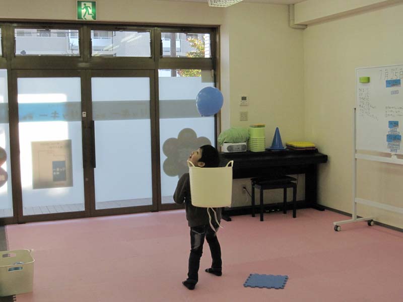 最初は風船、次に、ボール、小さいボール、ピンポン玉