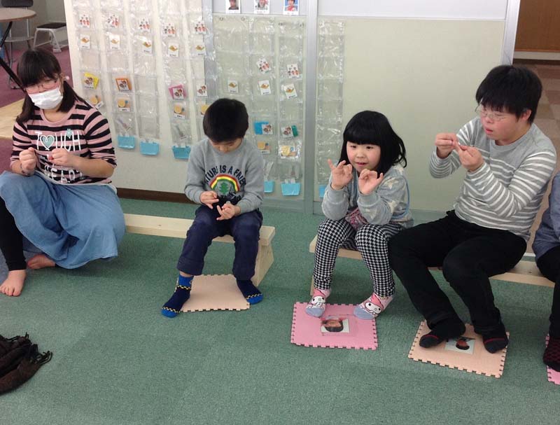 「キャベツのなかから」という、両手の指を1本1本動かす手遊びをしました。