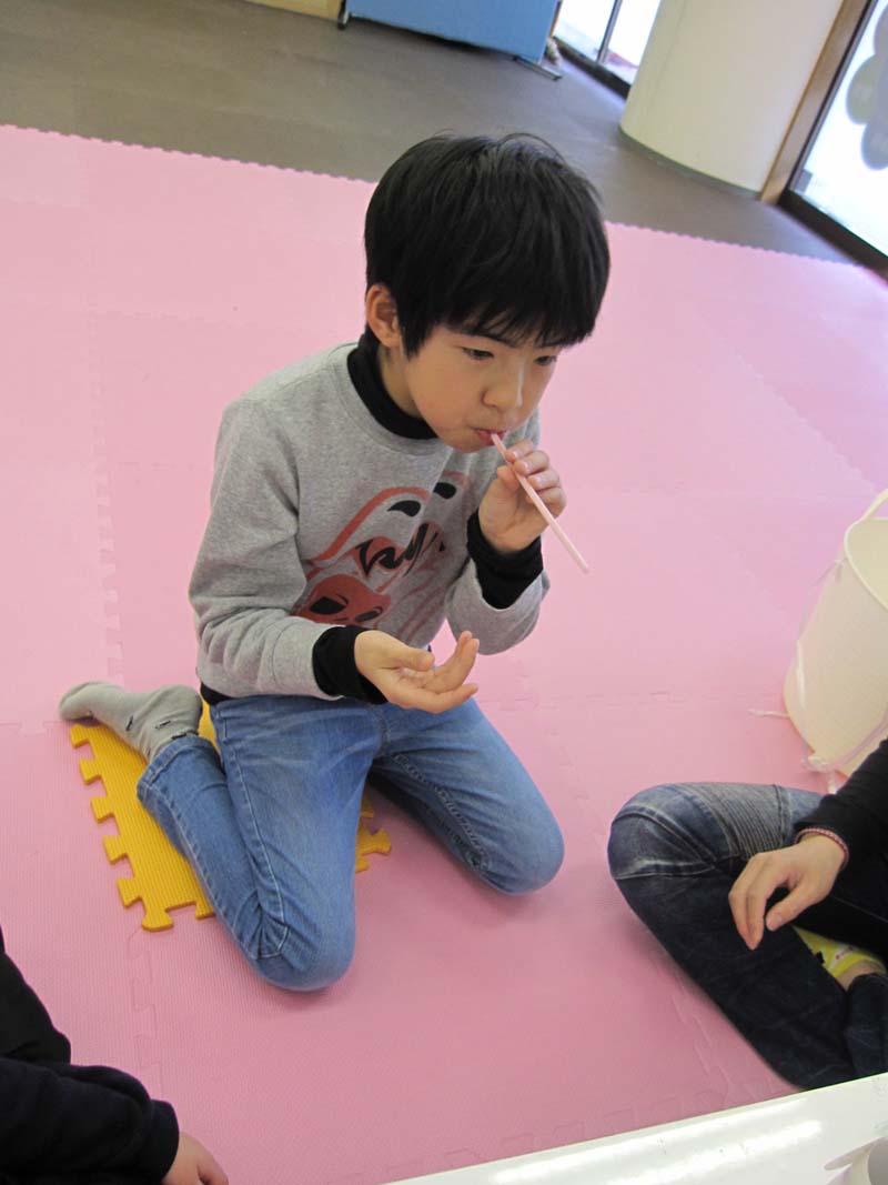 今日はストロー吹き矢で的当てをしました。
