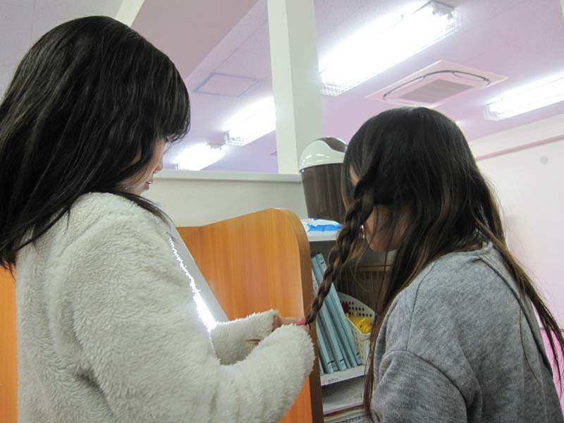 自分の髪を三つ編みにしていた子が