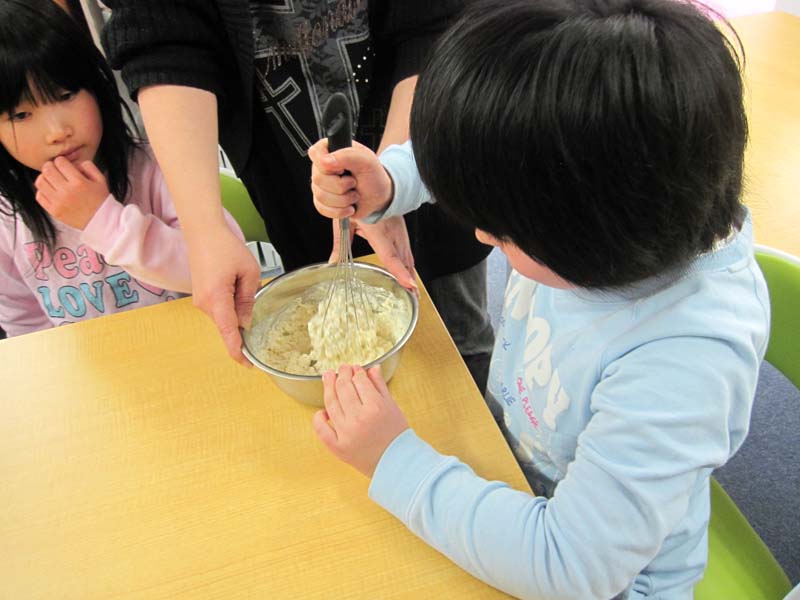 皆でまぜまぜ!すこしかたく、力いっぱい一生懸命まぜてくれました!