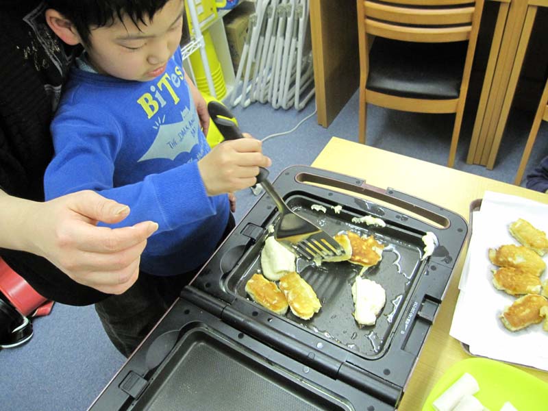 クッキングも行いました(*^_^*)ミニアメリカンドックを作ります!