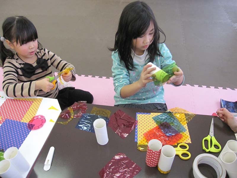 はさみや両面テープをつかって