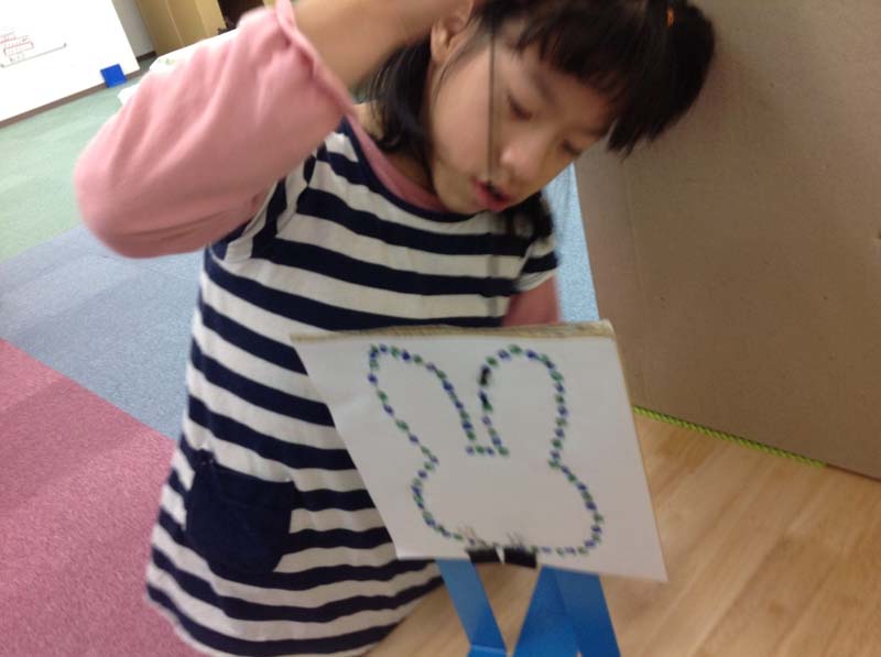 刺し子の練習、サポーターに次に入れる場所を教わることもありますが、