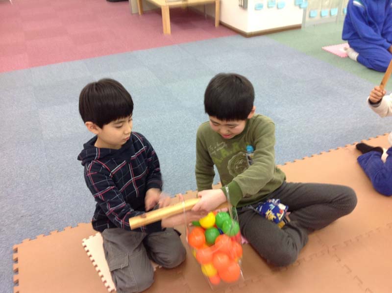 カラフルなビー玉がカラン、コロンとどんどん自分のお椀に入っていくのは楽しいものです。