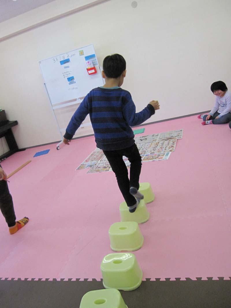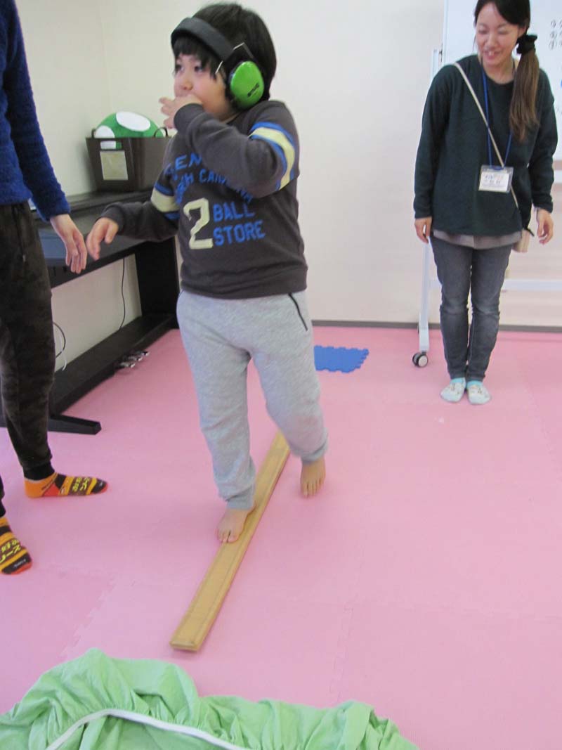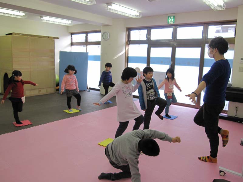 つぎにおこなったのは かたあしで ばらんすをとる練習!