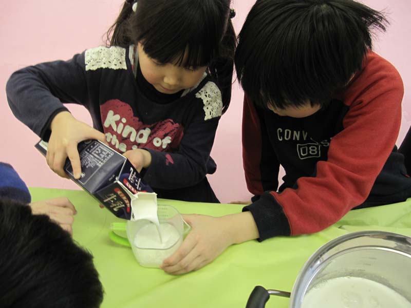 ぎゅうにゅう をはかるときも おともだちが てつだってくれました!