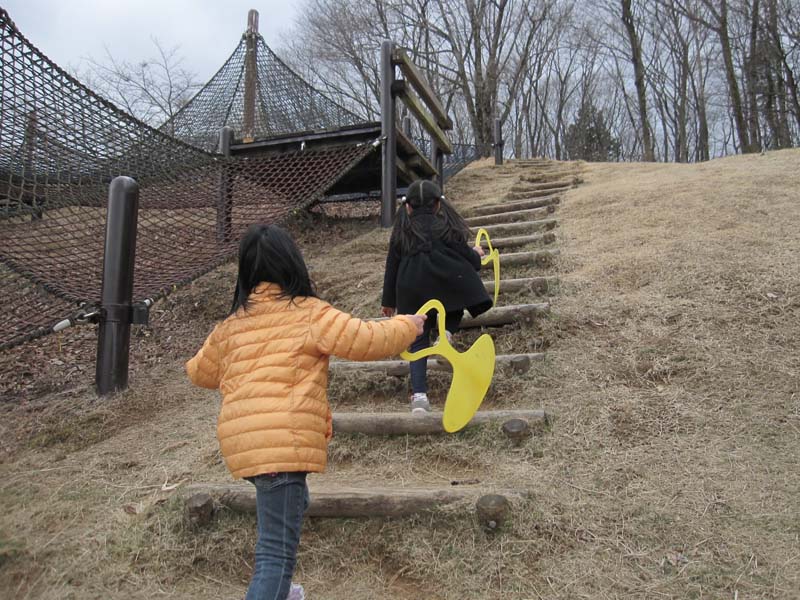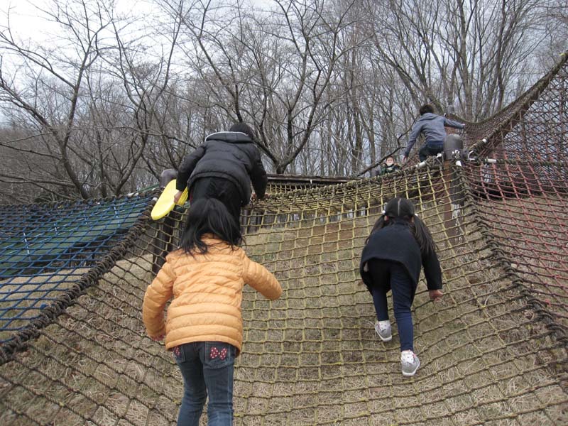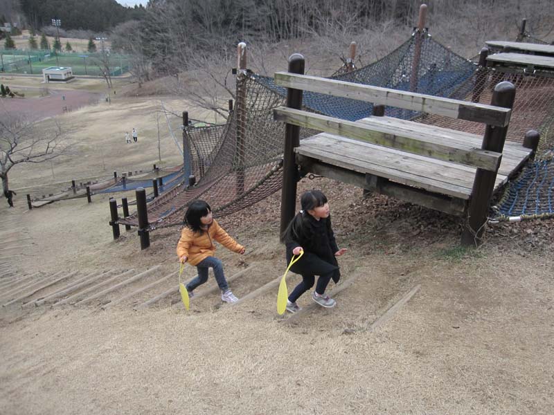 かいだんもあり ねっとをのぼるより すこしらくに すべりだいに むかうことが できます(=^・^=)