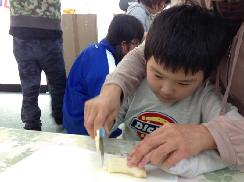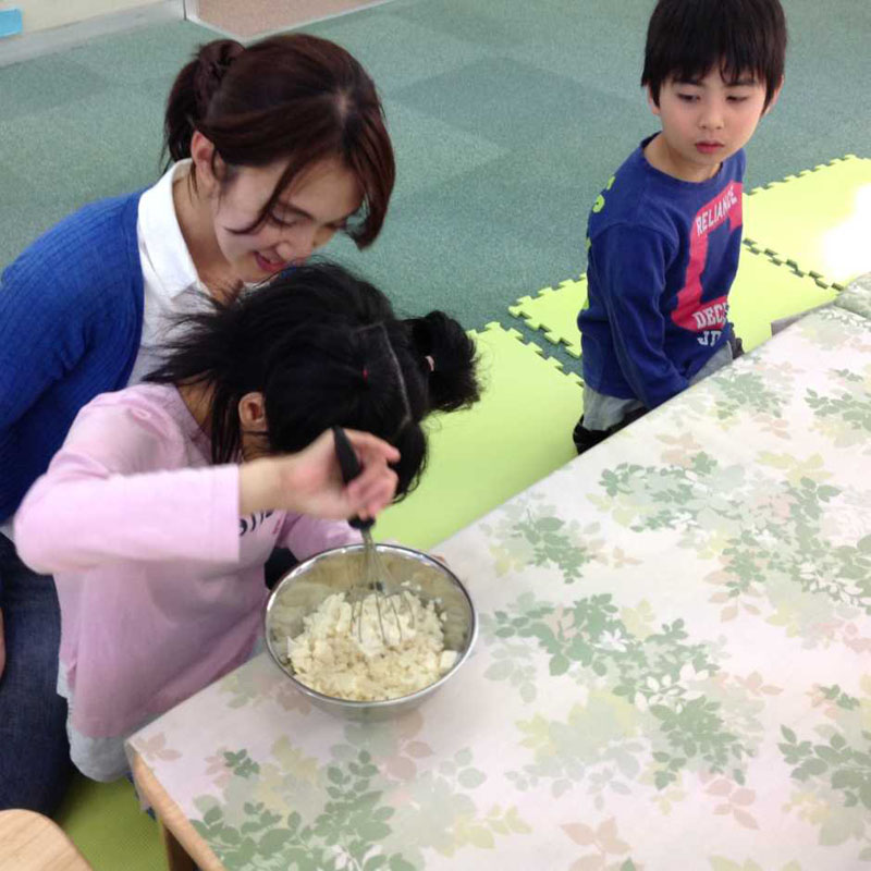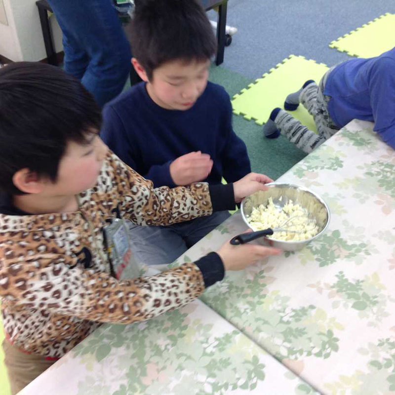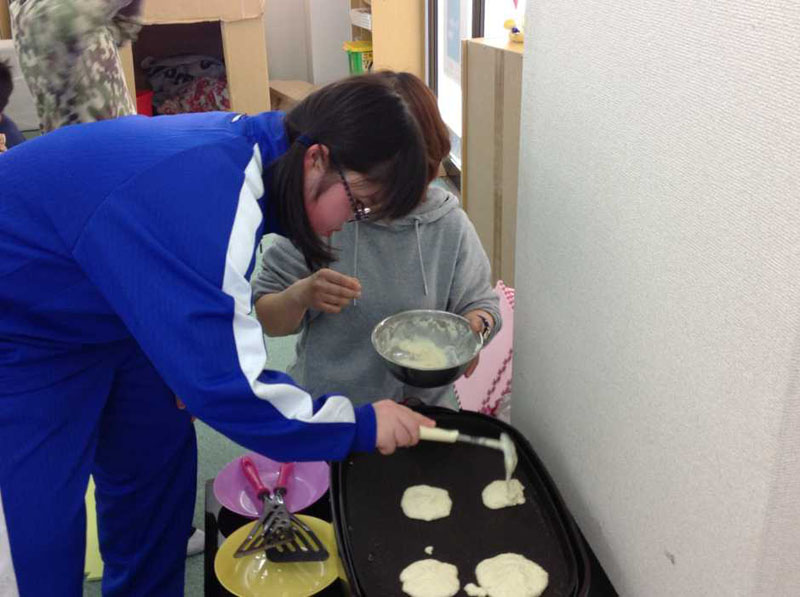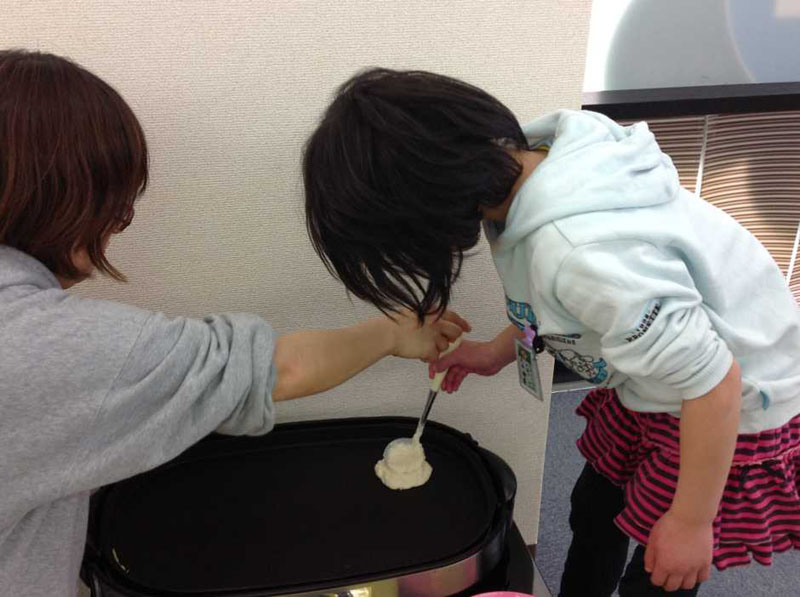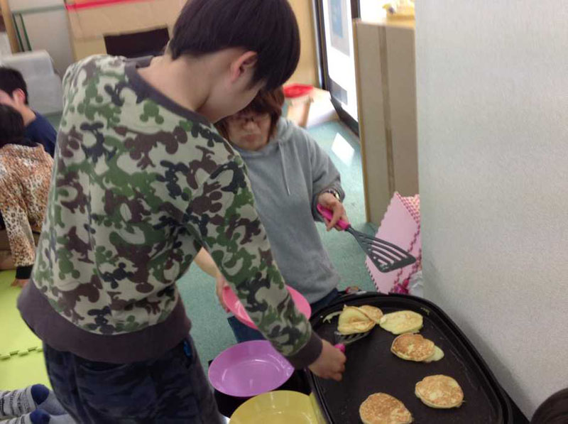 みんなで「お豆腐ホットケーキ」を作ってお祝いです。