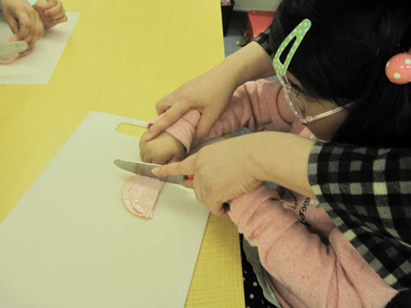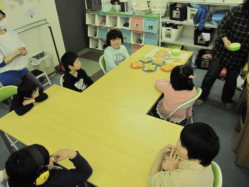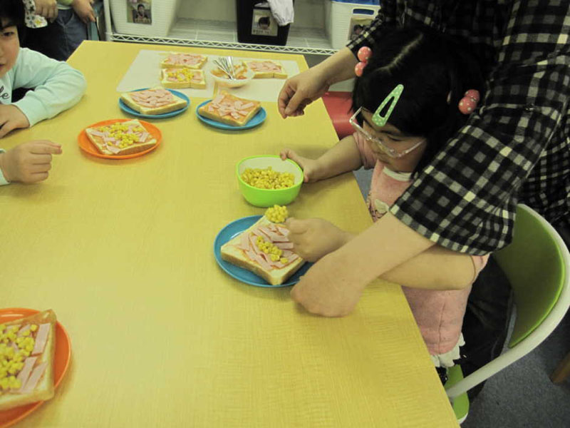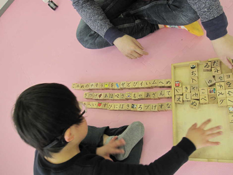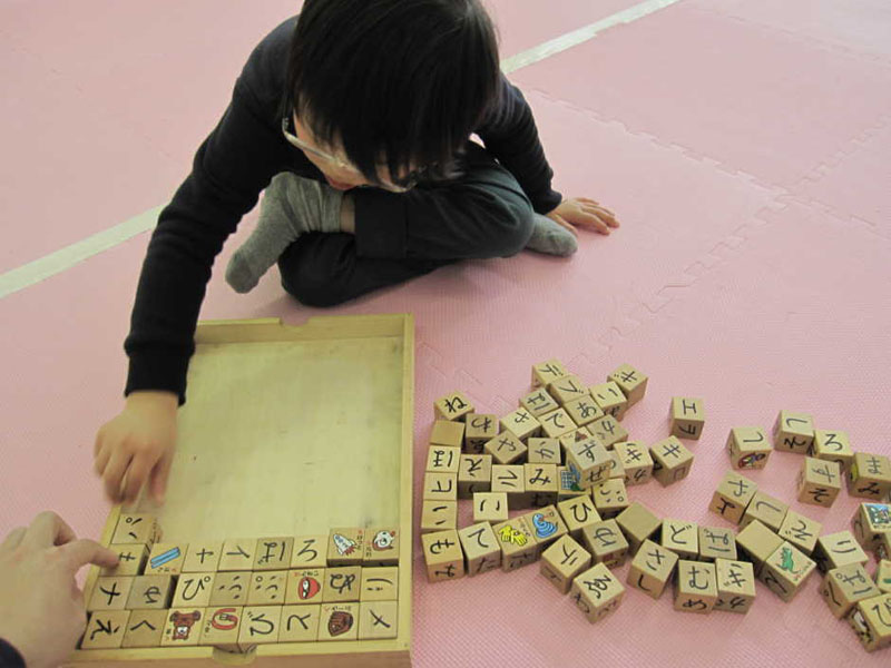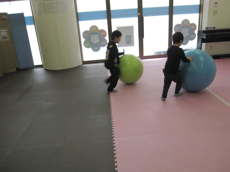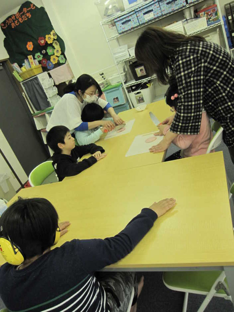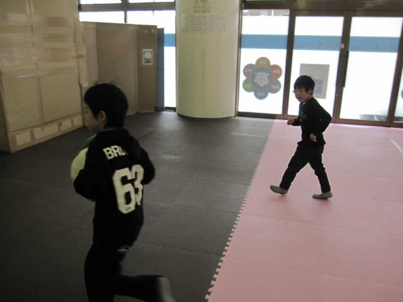 かいじゅうごっこで リッキーハウスにひなんしています。