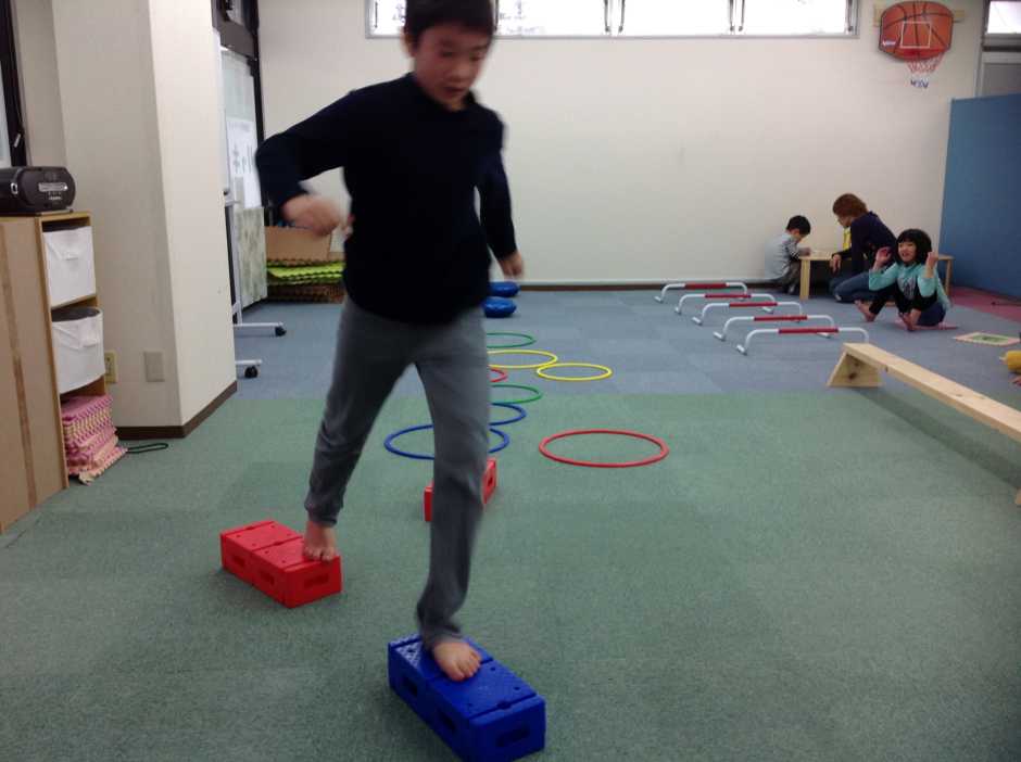 「キャアァ~落ちるぅ~」と叫びつつ、楽しんで平均台を渡ってくれる女の子。