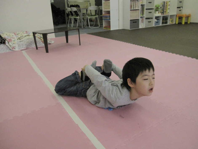 またまた ひざをかかえたまま もとにいちに おきあがってもらいました。