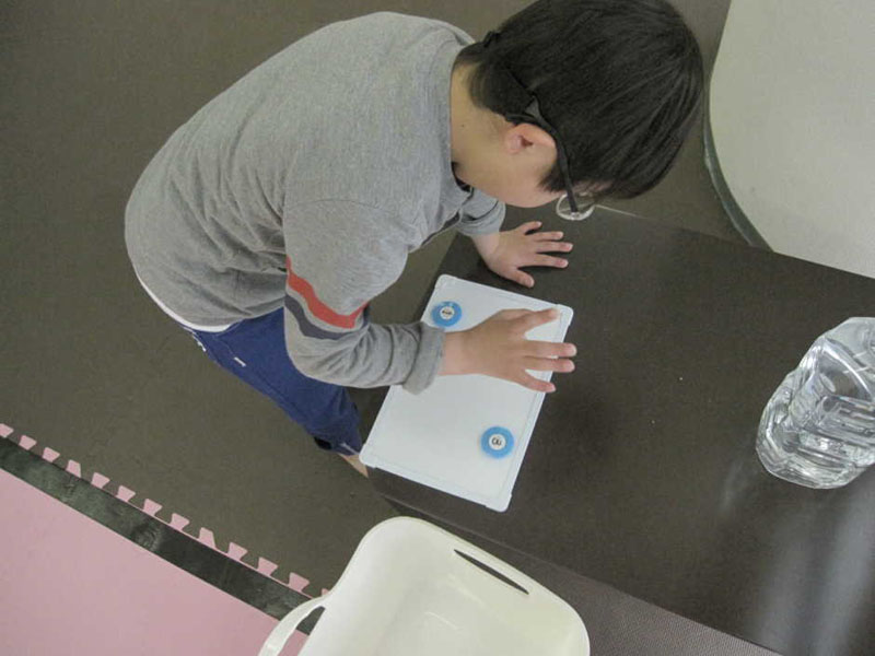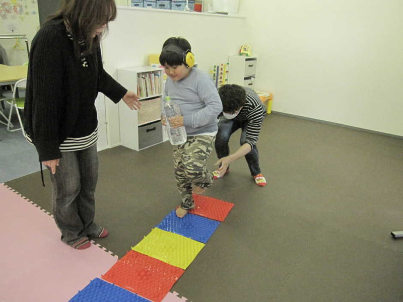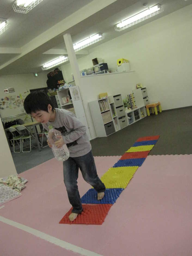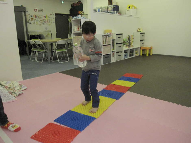 あしつぼマットで あしのうらをしげき(ー_ー)!!