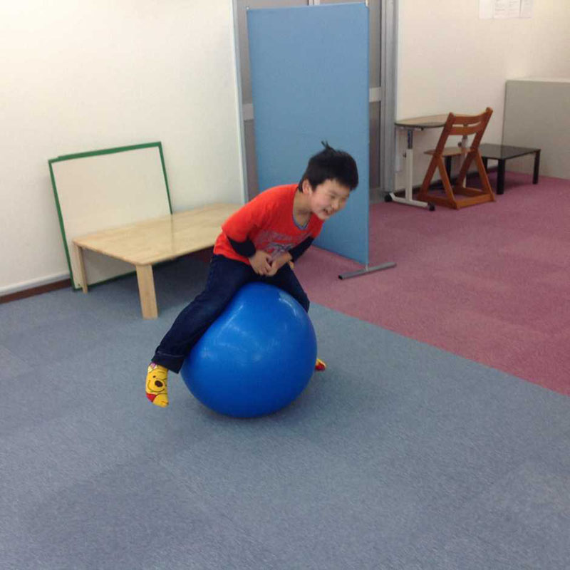 早く来所したお子さんは自由遊びの時間。お気に入りのバランスボールです。