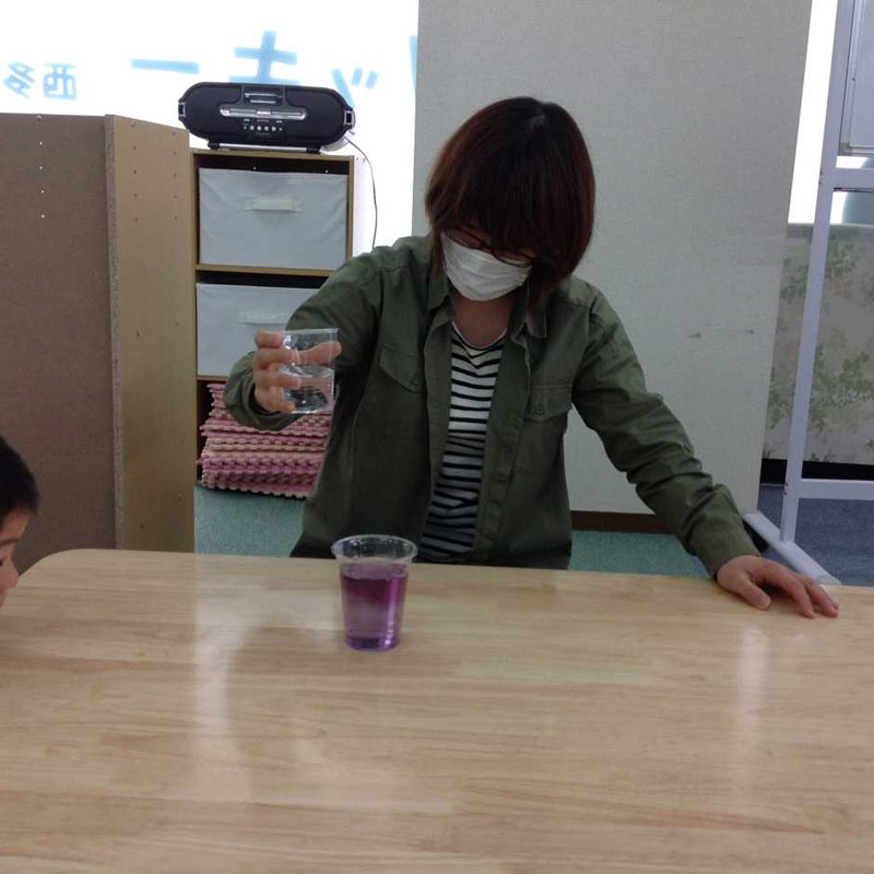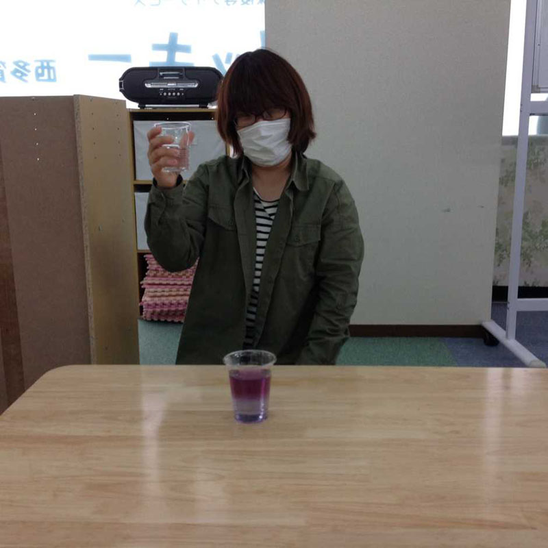 青い色水にとある液体をいれると