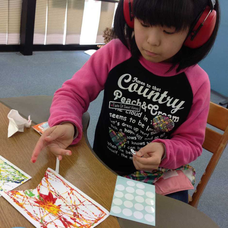 今日は「色」をテーマにしているので、まずはよく見てもらうために目の準備体操。