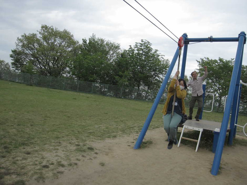 ゴールデンウィークさいしゅう日は、ごぜんちゅうは、こうえん へ。
