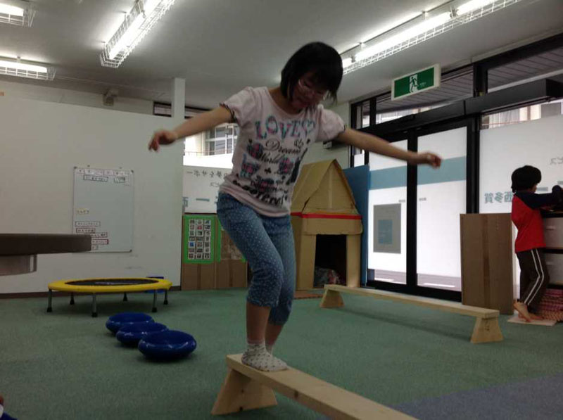 色別の箱にボールをいれる。