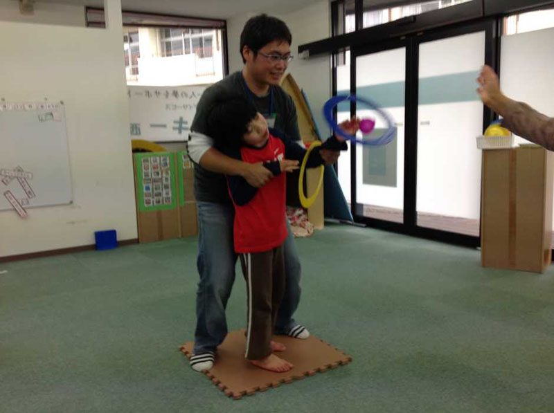 所定地よりはるか遠くから投げるお友達