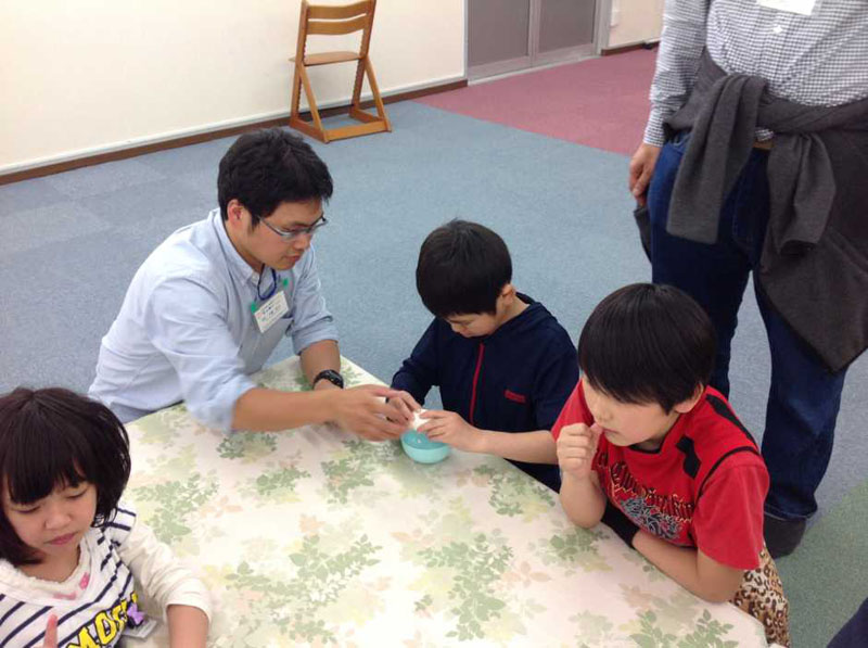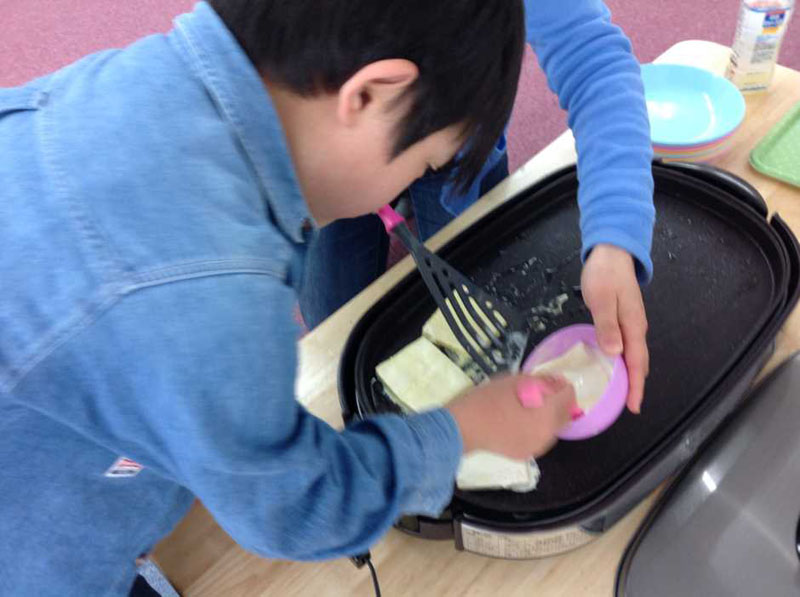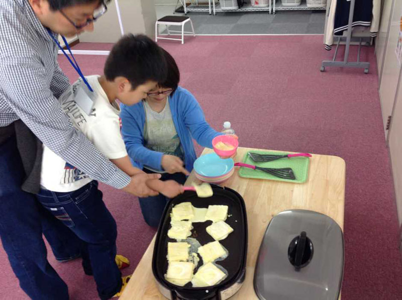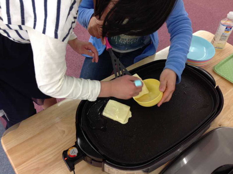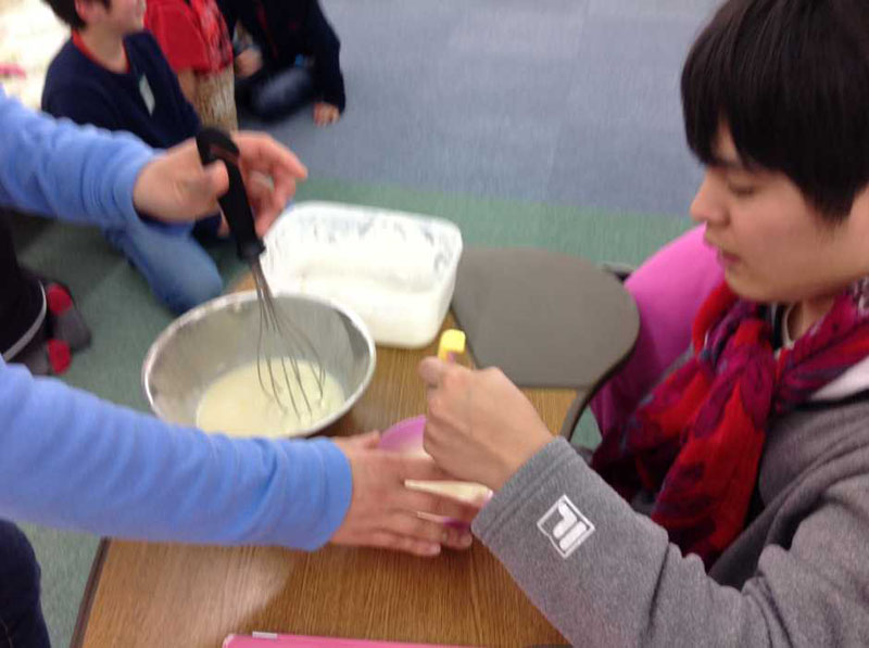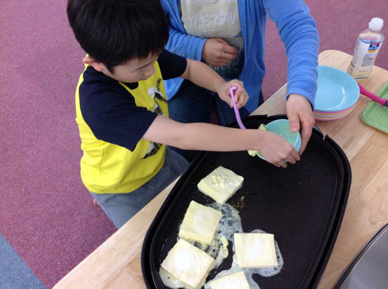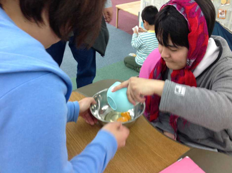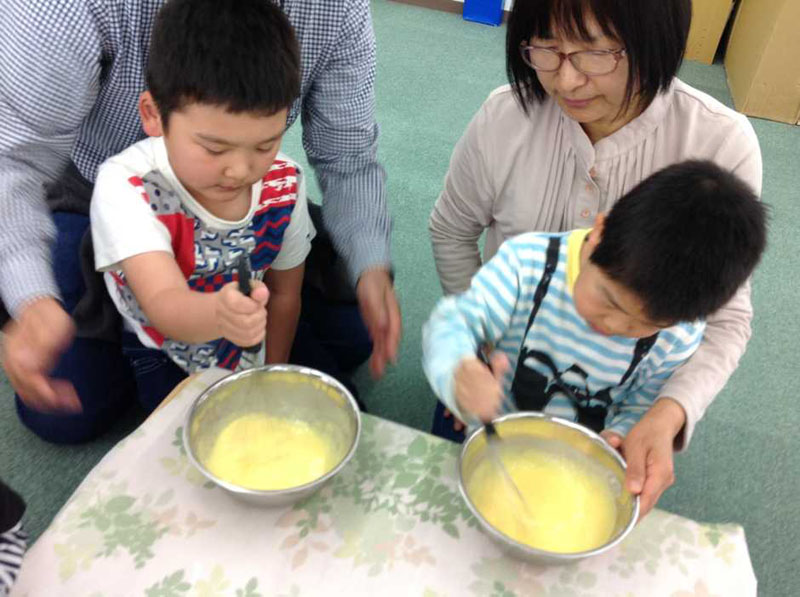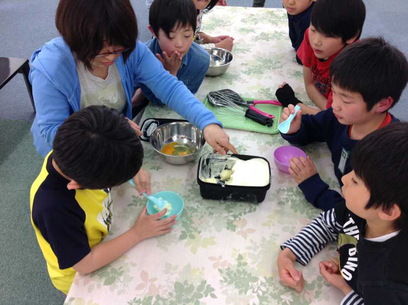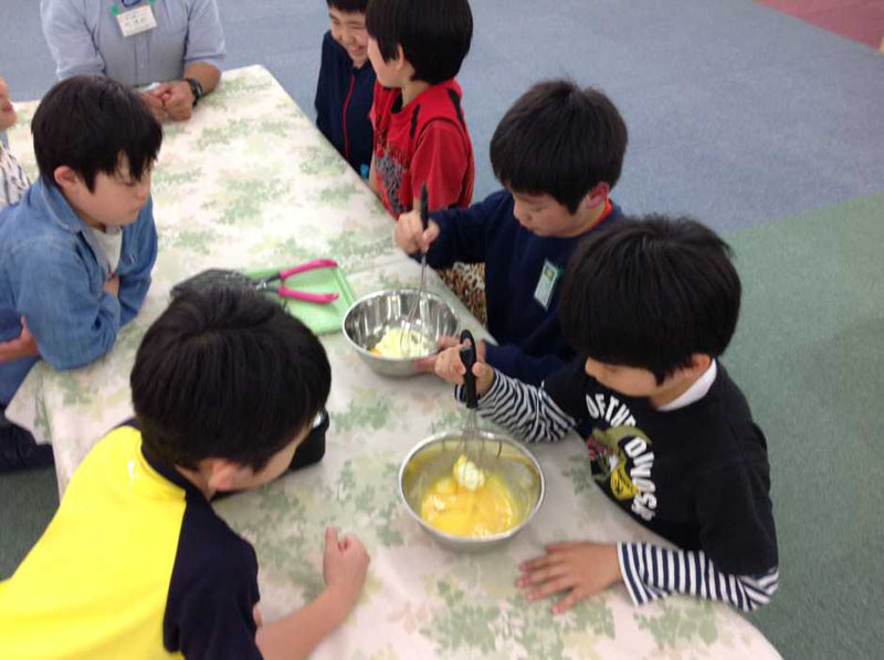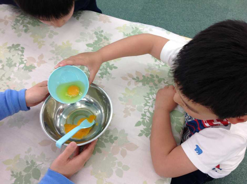 子どもたちには卵液を作る工程のおてつだいをお願いしました。