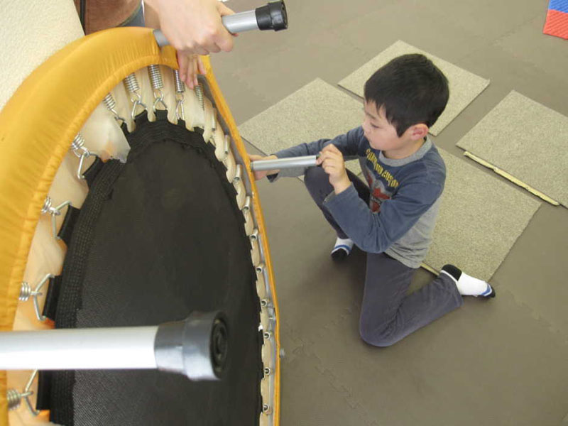 公園にいかない日は、ジャンプ遊びなどで前庭覚の働きを調整し、多動を少しずつおさめていきましょう。