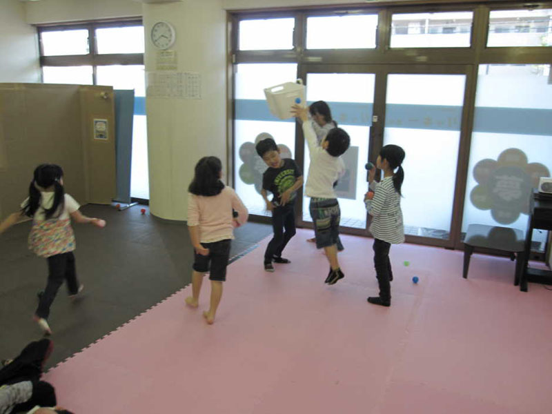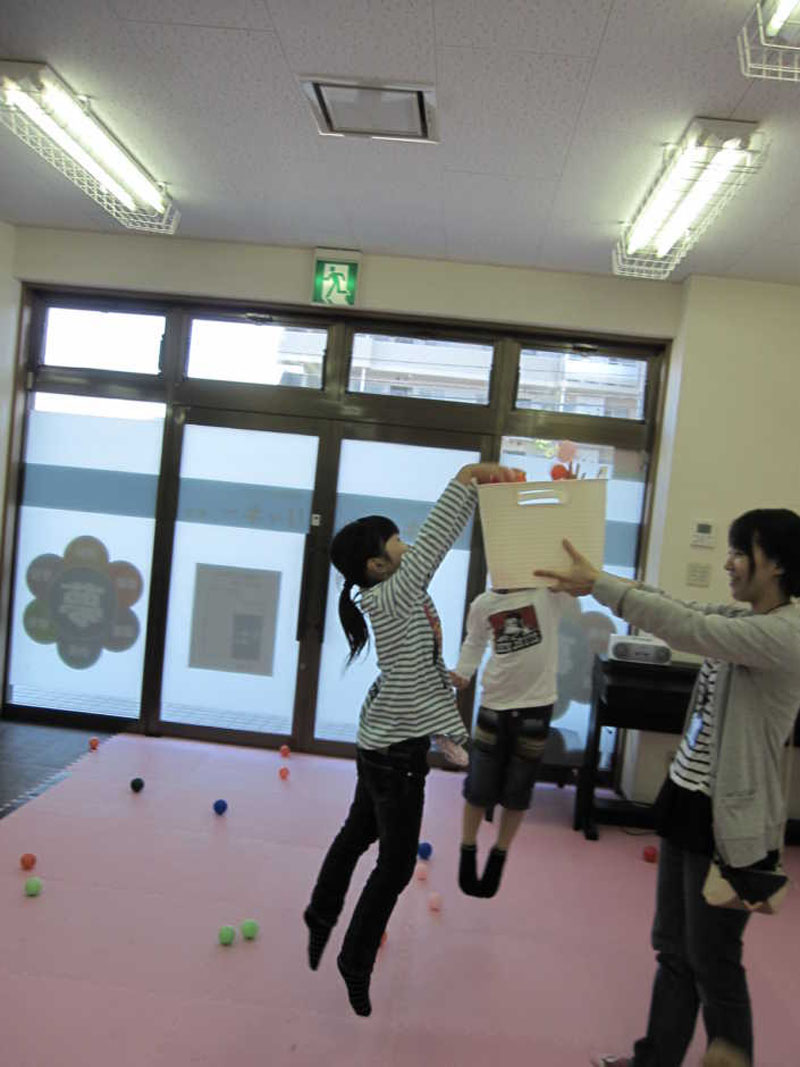 ボールをぜんぶいれたら みんなでかずをかぞえます!どきどき・・・どちらのチームがかつかな?