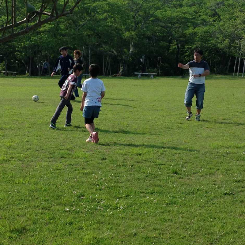 広々した芝生でサッカーやフリスビーもやってみました。