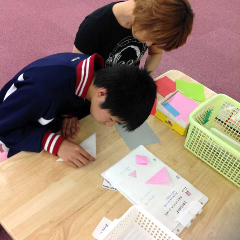チャレンジ課題では、てるてる坊主を折ってもらいました。