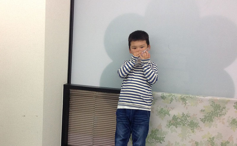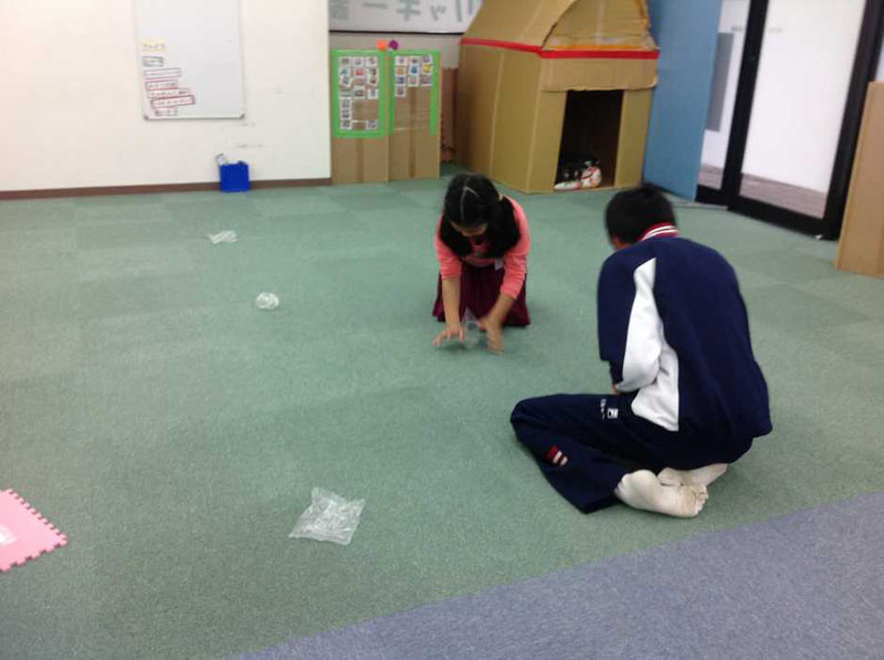 手全体で割れにくいときは指で押してみたり勢いよく叩いてみたりしながら、10個のエアクッションを早く割ろうと頑張ってくれました。