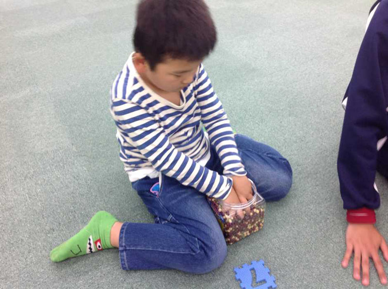 数字をさがしつつ、しばら~く豆の感触を楽しんでいるお子さんもいました。