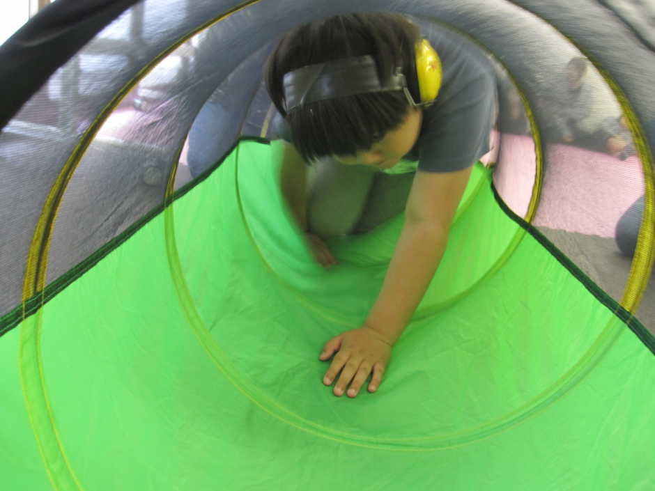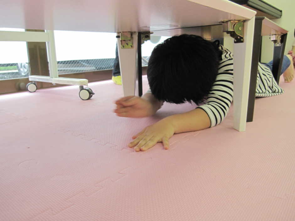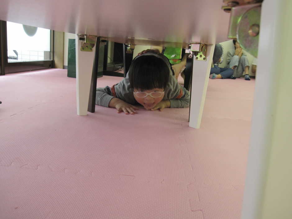 テーブルのした 輪(わ)のなかをくぐる サーキットうんどうをおこないました!(^^)!