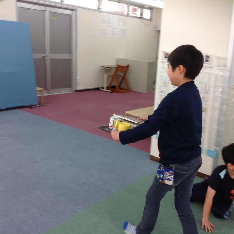 走ると落ちる…と学んだお子さんたち、落としてしまった後は慎重に歩いて運んでいました。