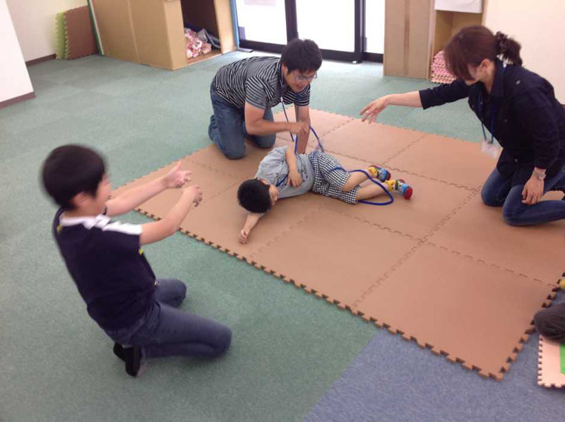 へびに巻かれても、ウヒャヒャと笑うお子さん。