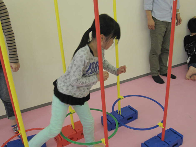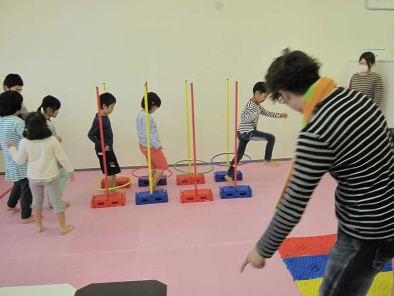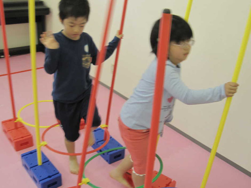 ポールをまたぐ 足つぼマットのうえをあるく テーブルのしたをくぐる サーキット運動をしました!