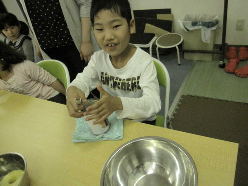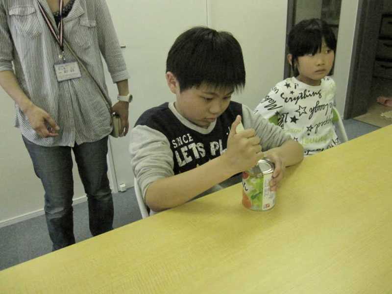 かんきりをつかって かんづめあけるかかり!