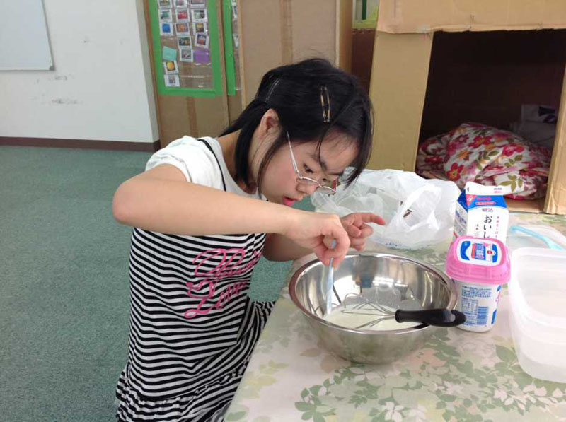 冷凍庫に入れたアイスをときどきスプーンでかきまぜてなめらかにしていきました。