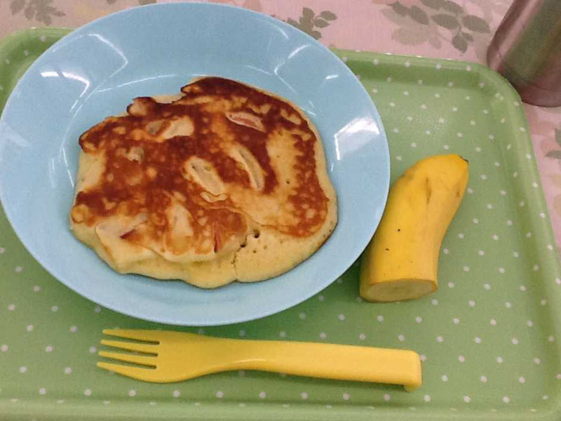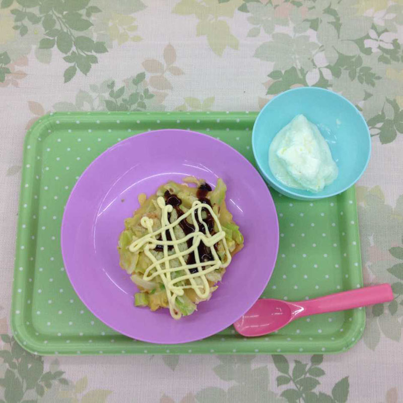 今日のおやつはお好み焼きと、フローズンヨーグルト。